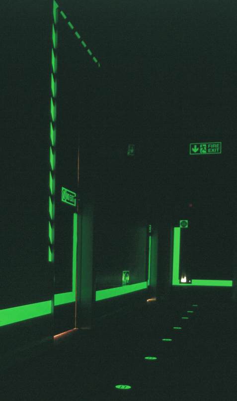 photoluminescent, glow in the dark signs, provide a very cost effective solution.
